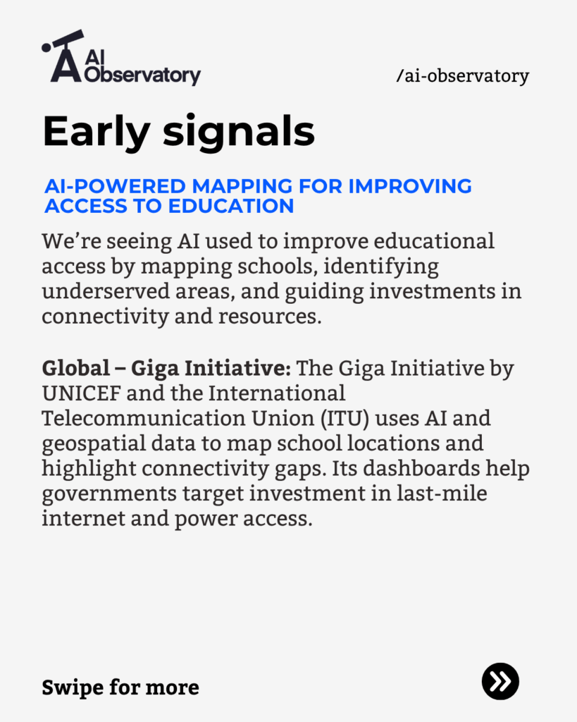 We’re seeing AI used to improve educational access by mapping schools, identifying underserved areas, and guiding investments in connectivity and resources.