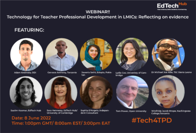 MEWAKA (Mafunzo Endelevu kwa Walimu Kazini, or Teacher Continuous Professional Development [TCPD]) is a landmark, school-based teacher professional development programme being implemented nationally by the Government of Tanzania, with the ultimate aim of raising learning outcomes in schools. EdTech Hub, Aga Khan University, and the Tanzania Institute of Education (TIE) are conducting research to iteratively enhance the MEWAKA implementation at primary school level and to understand the role that technology can play in scaling TCPD. This report presents the findings and recommendations from the first cycle of design-based implementation research (DBIR) conducted in rural schools in the Lindi region. Following a pilot peer facilitator workshop, data was collected through observation and self-reporting methods between September and December 2022. The aims were to capture stakeholders’ perspectives at all levels of the education system and to see how schools are implementing the programme on the ground. The emerging findings and recommendations are being used to inform the redesign and further implementation of this TCPD model, and were used to identify key areas to test and investigate in the second cycle of the DBIR in 2023.