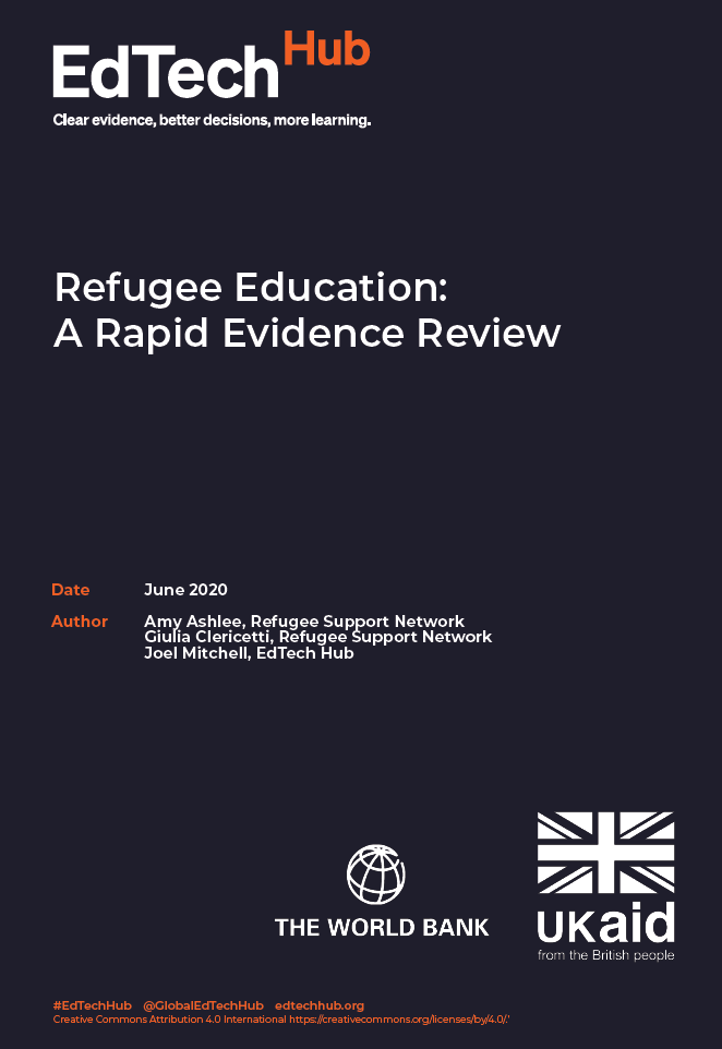 Ashlee, A., Clericetti, G., & Mitchell, J. (2020). Refugee Education: A Rapid Evidence Review (No. 3). EdTech Hub. https://doi.org/10.5281/zenodo.4557019