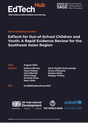 I lead EdTech Hub’s Asia portfolio, which includes the Hub’s engagements in South Asia, Southeast Asia, and the Middle East. With over nine years of experience, I work closely with our country teams and partners to leverage evidence-based approaches in co-designing and implementing impactful digital solutions and policies. This includes supporting decision-makers with the evidence needed to drive large-scale digital transformation, strengthen resilience during emergencies, and navigate the evolving landscape of artificial intelligence.