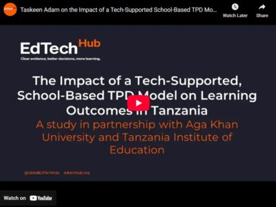 Video: Taskeen Adam on the Impact of a Tech-Supported School-Based TPD Model on Tanzania Learning Outcomes